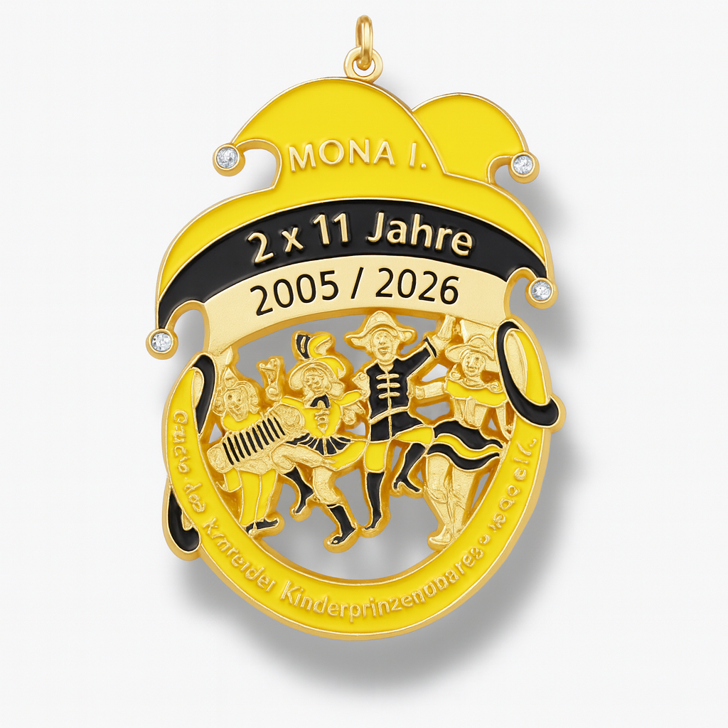 Ein personalisierter Orden stärkt den Wiedererkennungswert, vermittelt Tradition und schafft ein Gefühl von Zusammenhalt. Für Vereine, Garden, Funken und Gesellschaften sind individuelle Orden ein wichtiger Bestandteil der Brauchtumspflege und sorgen jedes Jahr für Begeisterung.