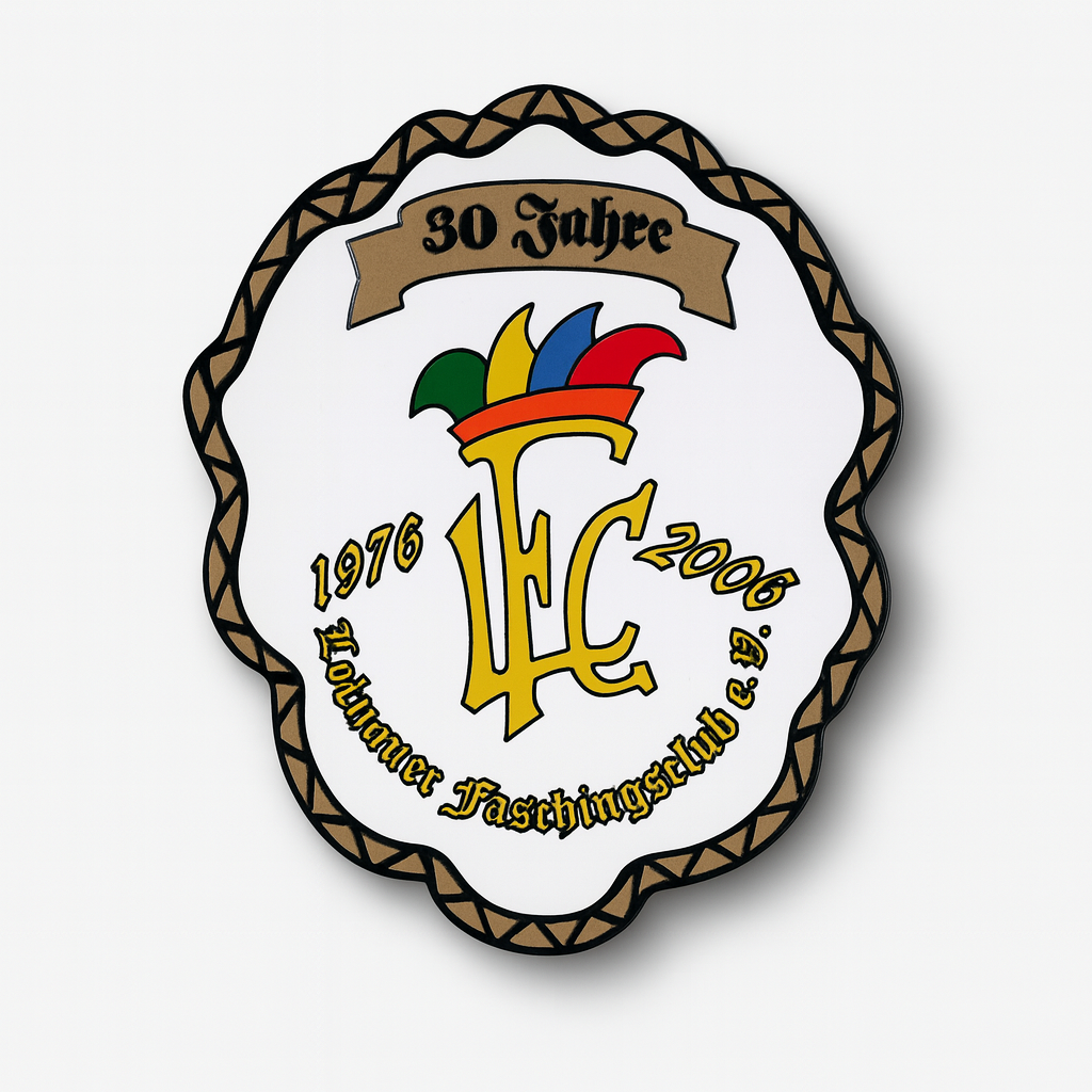 Wir gestalten und produzieren Karnevalsorden, die vollkommen flexibel angepasst werden können. Farben, Formen, Materialien und Details wählen Sie selbst. Ob Vereinslogo, Sessionsmotto, Jubiläum oder individuelles Symbol – wir setzen Ihr persönliches Motiv kreativ und hochwertig um.